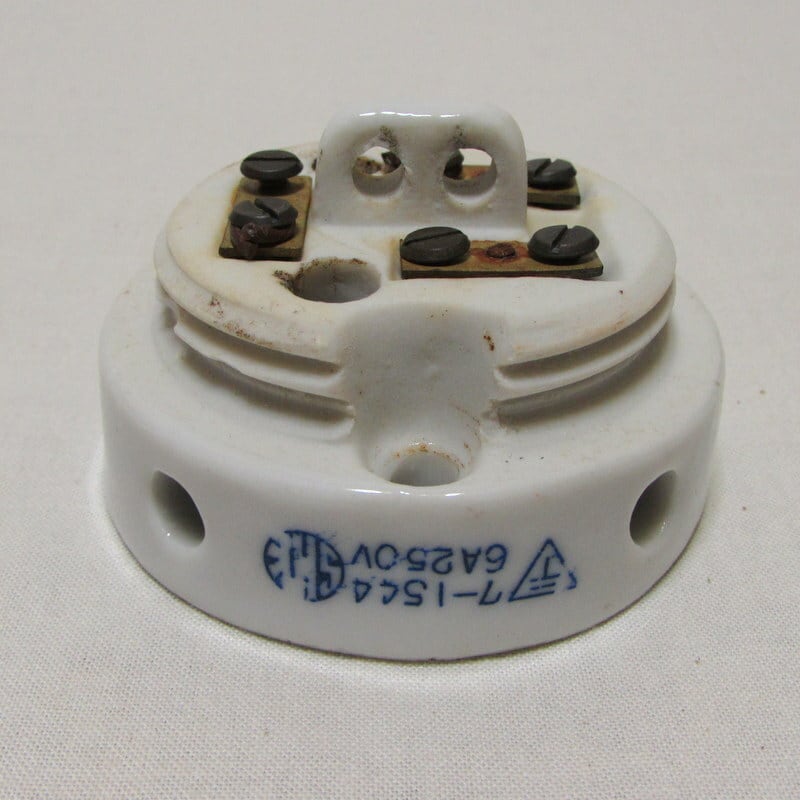 昔は天井に照明器具を取り付ける時は碍子を使って照明器具に直接電線を繋げていました。