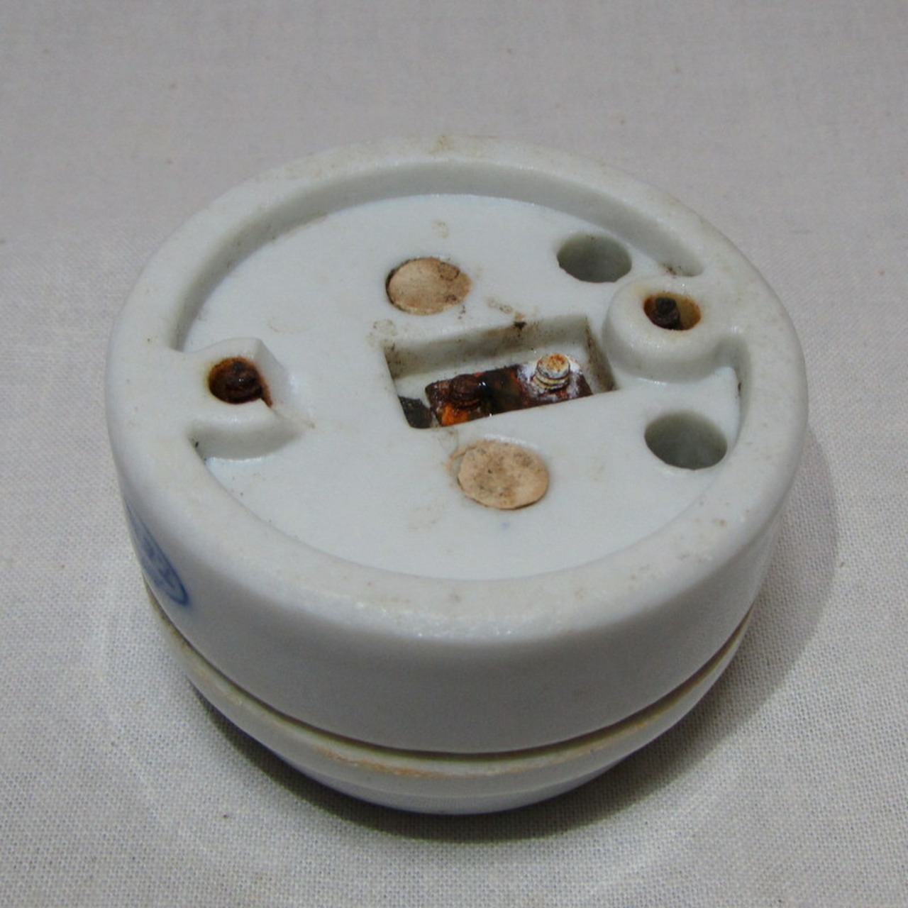 ねじが錆びて固まっていますが、磁器の白に青い文字が記載されている雰囲気や